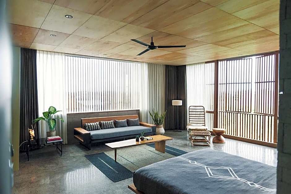 This spacious suite feature furniture and crafts produced by local artisans. It has floor-to-ceiling windows and an private bathroom with rain shower.